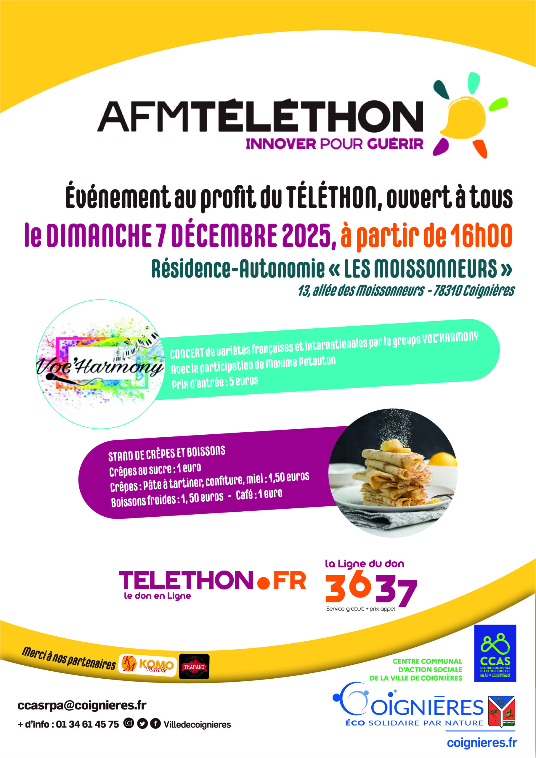 Dimanche 7 décembre à partir de 16h : concert de variété française et internationale au profit du Téléthon