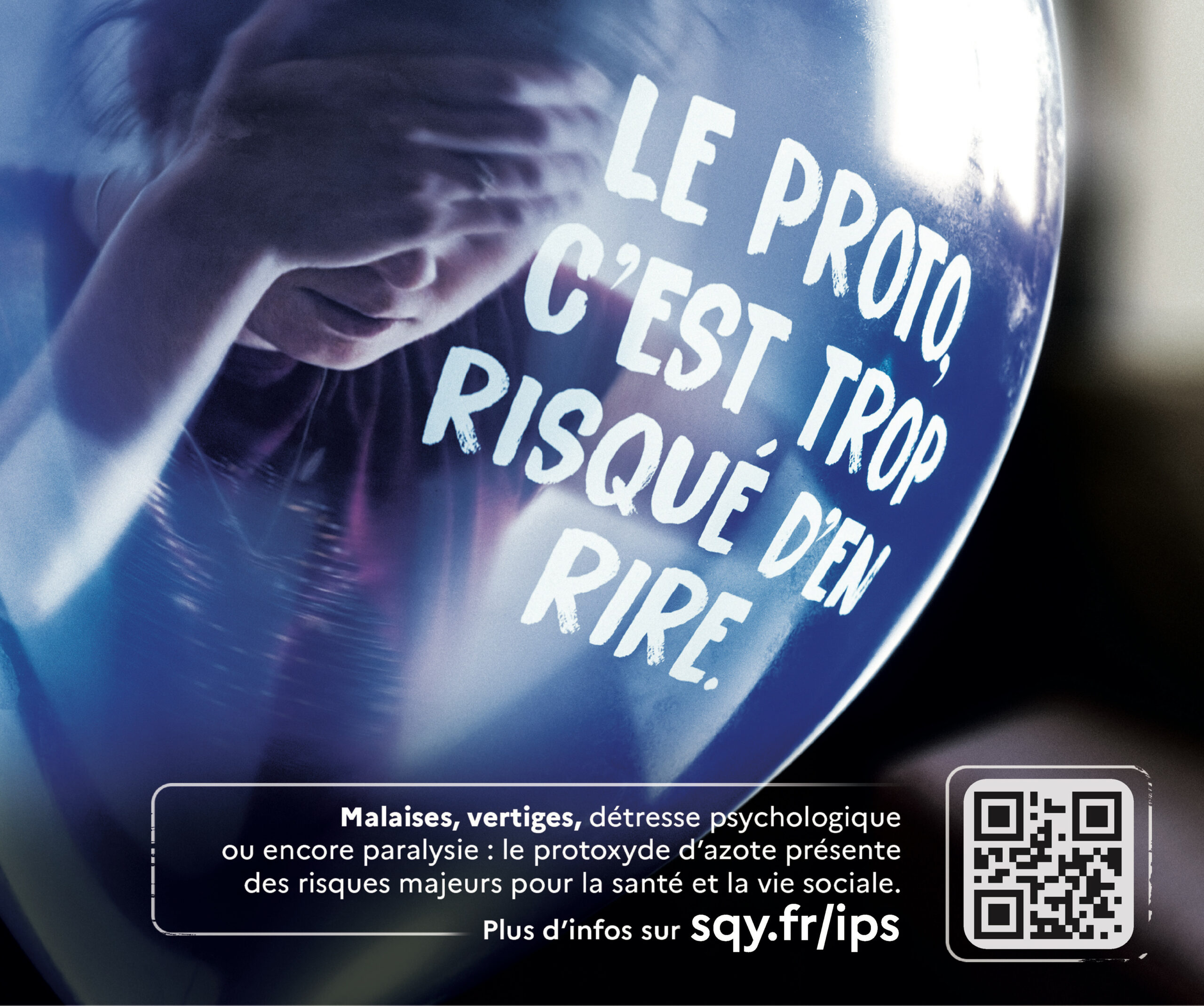 L’usage détourné du protoxyde d’azote, ou « proto », peut engendrer une dépendance ainsi que des complications parfois irréversibles sur le système nerveux et le système cardiovasculaire (cœur et vaisseaux) en cas de prises répétées et/ou en grande quantité.