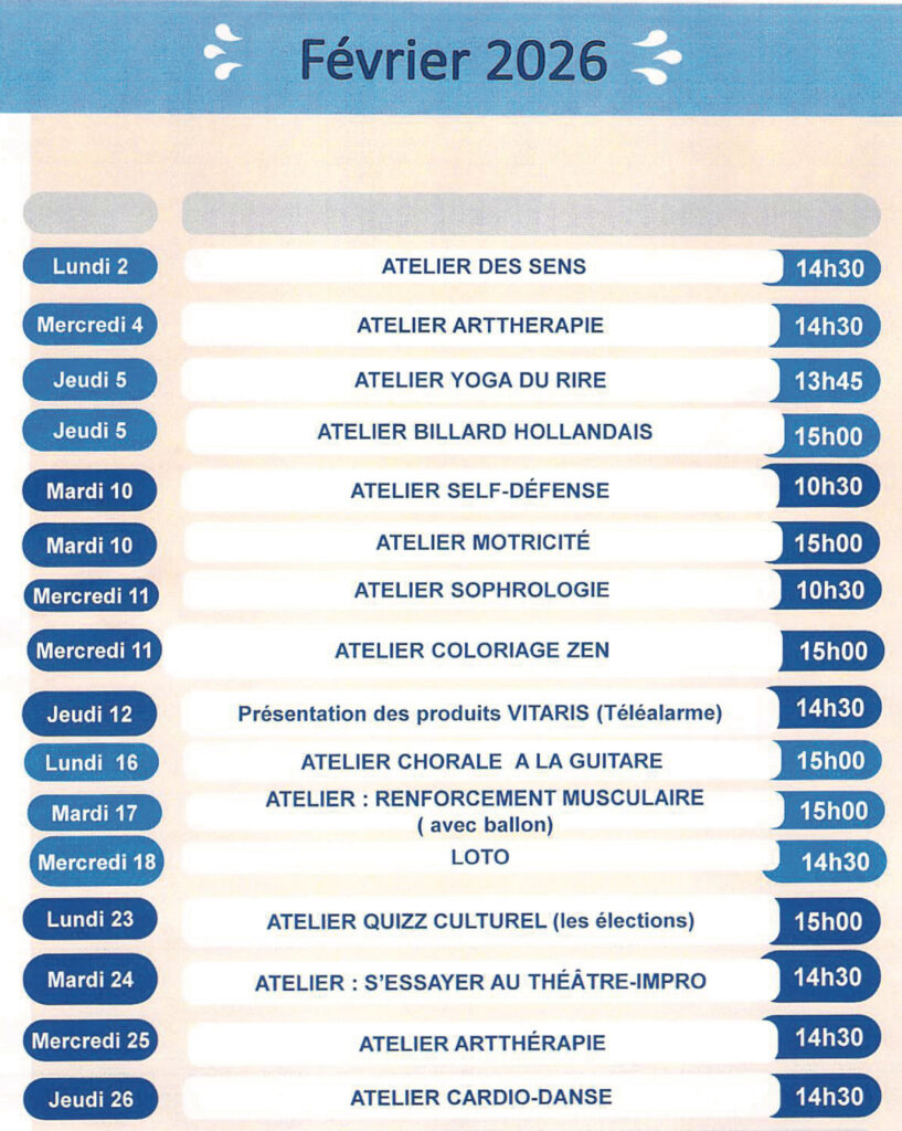 Activités, Extérieurs, Inscriptions, Résidence-autonomie, Seniors Résidence-autonomie : des activités ouvertes aux retraités non-résidents en février Découvrez, ci-après, le programme des animations proposées au mois de février 2026. Publié le 26 janvier 2026 Inscriptions 48 heures avant l’activité au 01 34 61 45 75 ou par mail à ccasrpa@coignieres.fr Localiser Choix du plan © Contributeurs OpenStreetMap Fermer Précédent Retour à la liste Suivant