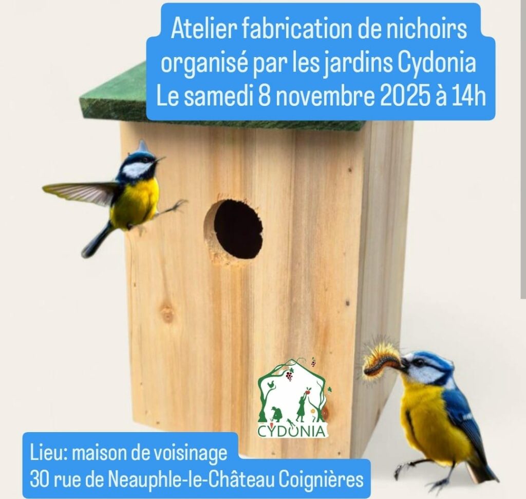 Samedi 8 novembre : atelier de fabrication de nichoirs à oiseaux De 14h à 16h, à la Maison de Voisinage, participez à ce temps fort organisé par l’association « Les Jardins Cydonia ». Publié le 13 octobre 2025 Inscriptions : jardinpartagecoignieres@gmail.com ou 06 40 50 21 00 – Infos : jardinscydonia.fr Précédent Retour à la liste Suivant