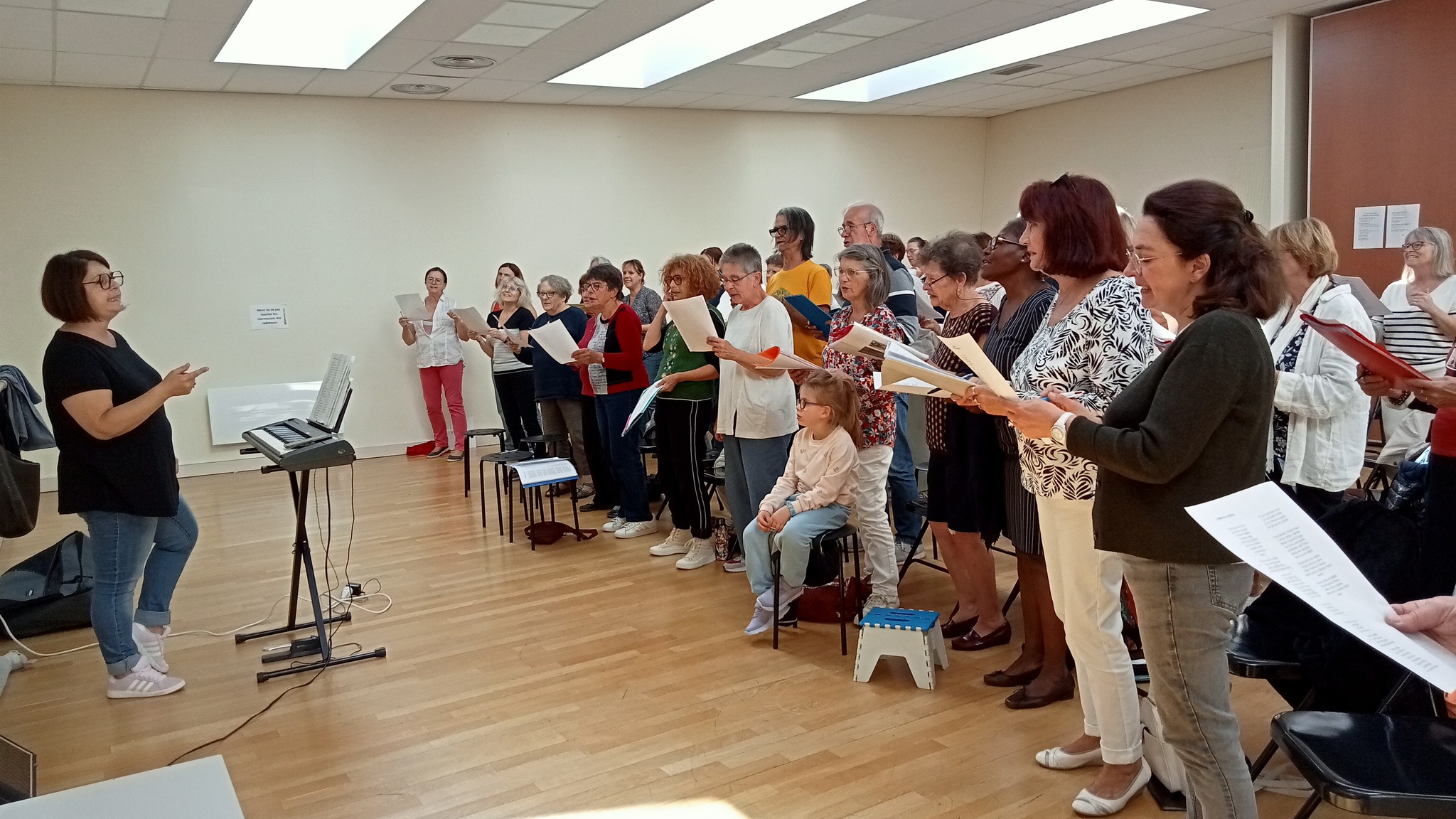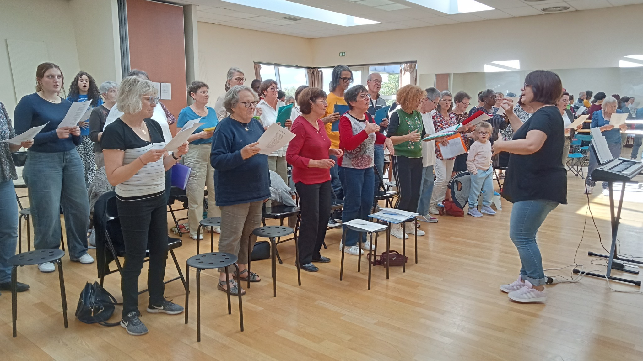 Atelier chant « Les agités du vocal » du 21 septembre 2025 Plus de 50 chanteurs néophytes et confirmés ont passé un agréable moment, sous la houlette de l’artiste professionnelle Sandrine Conry. Publié le 22 septembre 2025 Précédent Retour à la liste Suivant