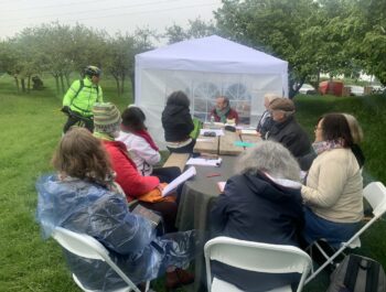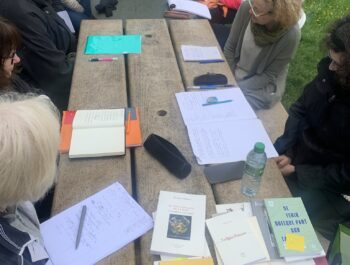 Les passionnés de rédaction étaient réunis au Val Favry le dimanche 14 mai 2023, à l’occasion d’un atelier d’écriture encadré par l’écrivain Bernard Moreau. Organisé par « Les Amis des Médiathèques » de SQY, ce temps fort, auquel ont assisté le Maire Didier Fischer et son adjointe Sophie Piffarelly, a été l’occasion pour les membres de l’association « Les Jardins Cydonia » de présenter le site du Val Favry aux participants.