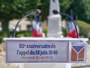 Le 18 juin 2025, les habitants de Coignières et des villes environnantes se sont rassemblés au monument aux morts de la commune pour commémorer le 85e anniversaire de l'appel du Général de Gaulle du 18 juin 1940. Une cérémonie pluricommunale organisée en présence de M. le Maire de Coignières, D. Fischer, des élus de la commune, dont Sophie Piffarelly, du Maire de Maurepas, Conseiller Départemental, M. Garestier, du Maire de la Verrière, Conseiller Départemental, M. Dainville, du Maire du Mesnil-Saint-Denis, représenté par Gilles Roubion, conseiller municipal délégué, des enfants du CMEJ, des représentants des associations d’anciens combattants, ainsi que des représentants des autorités civiles et militaires.