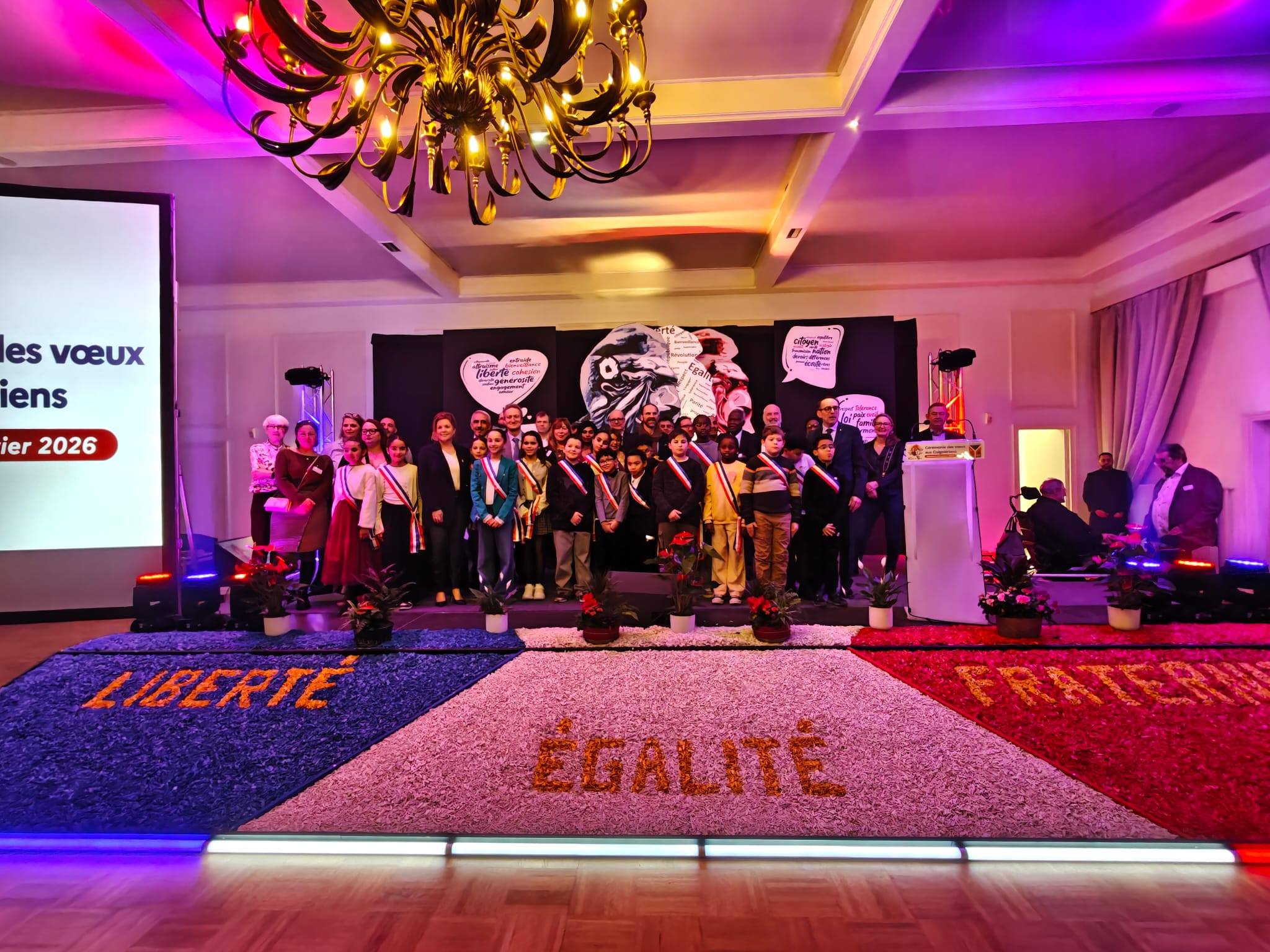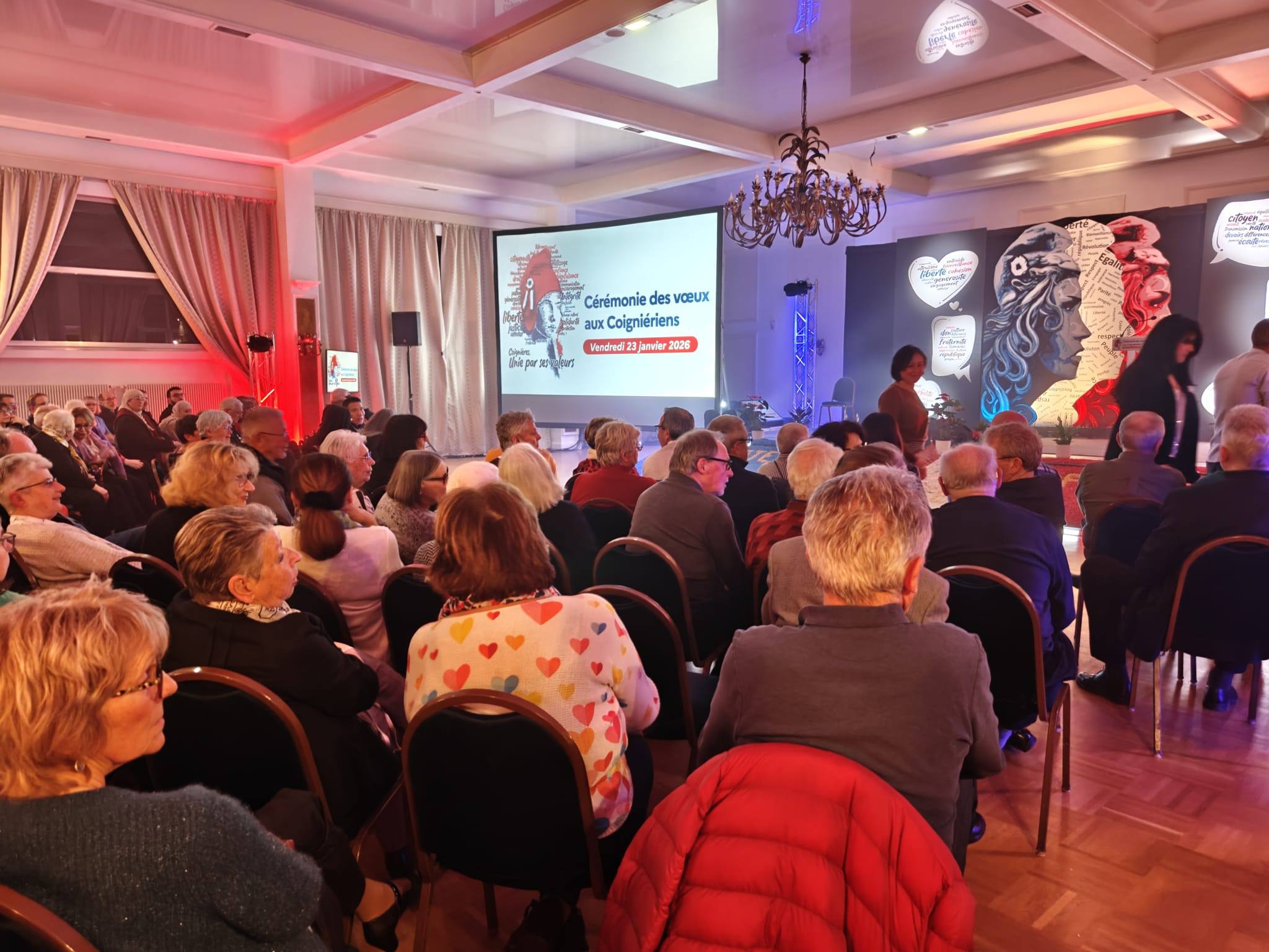 Les salons Antoine de Saint-Exupéry ont accueilli, le 23 janvier 2026, la traditionnelle cérémonie des vœux à la population. Articulé autour de la thématique « Coignières, unie par ses valeurs », cet événement convivial et fédérateur a rassemblé près de 400 personnes. La cérémonie a été l’occasion de revenir sur les initiatives et les projets marquants de l’année écoulée, avant de partager un savoureux cocktail dinatoire, suivi de la traditionnelle galette des rois. Elle s’est déroulée en présence de M. le Maire, des élus de la commune dont l’adjointe en charge des cérémonies et des fêtes, de la députée des Yvelines, du préfet délégué à l’égalité des chances, des maires et élus de SQY, d’élus départementaux, des représentants des autorités civiles et militaires, ainsi que des enfants du CMEJ.