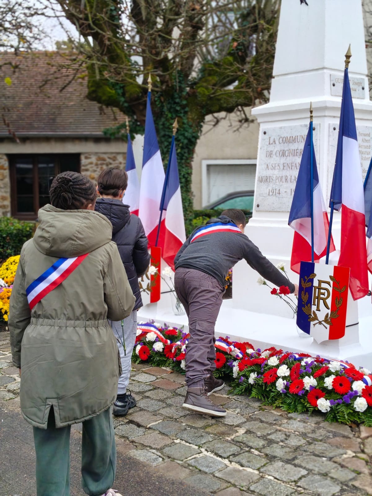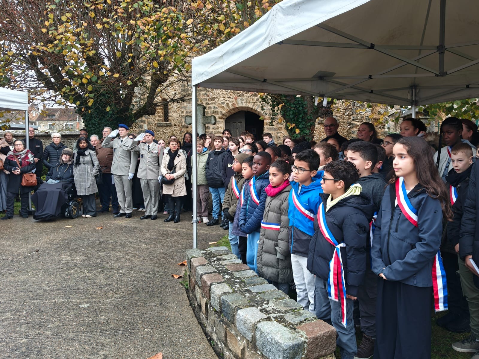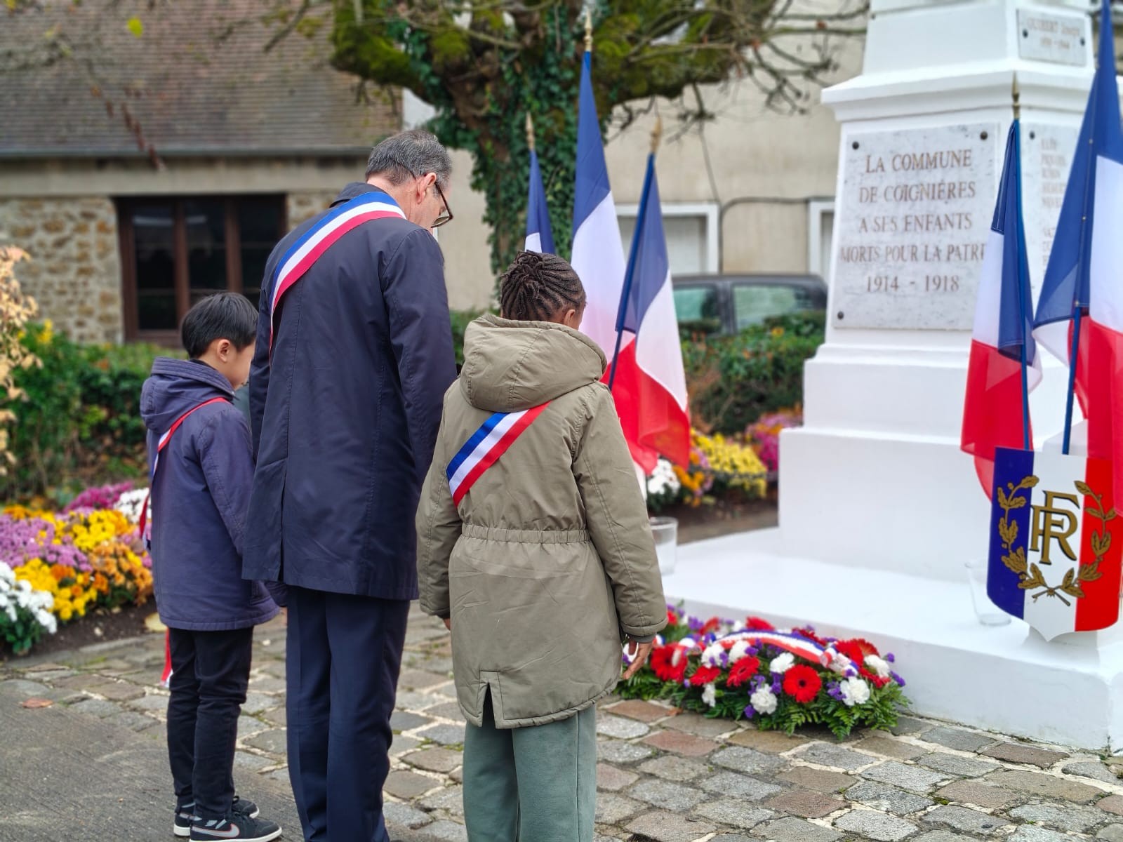 Le 11 novembre 2025, de nombreux Coigniériens se sont réunis sur la place de l’Église, à l’occasion du 107e anniversaire de l’Armistice du 11 novembre 1918. Une cérémonie émouvante en hommage aux combattants de la 1ère Guerre Mondiale, en présence de M. le Maire, des élus de la commune dont l’adjointe en charge des cérémonies et fêtes ainsi que du correspondant défense, des membres de l’Association des Anciens Combattants de Coignières, des élus du CMEJ, des élèves de 3ème de la classe défense et des représentants des autorités civiles et militaires.