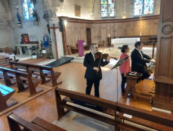 Dimanches musicaux du 6 avril 2025 La musique classique s'est invitée dans l'Église Saint-Germain d'Auxerre, avec un concert assuré par Jean-Charles Gandrille (organiste) et David Galoustov (violoniste). Une prestation au sein de l'église de la commune très appréciée des spectateurs. Publié le 11 avril 2025 Précédent Retour à la liste Suivant