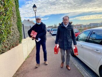 😀 Les seniors coigniériens de plus de 80 ans vont se régaler ! Le mardi 13 décembre 2022, nos aînés n'ayant pas pu assister au banquet-spectacle du 9 décembre 2022 ont eu l’agréable surprise de recevoir, des mains de Monsieur le Maire Didier Fischer et de l’élu chargé de l’action sociale Marc Montardier, un panier sucré ou salé offert par le Centre Communal d’Action Sociale.