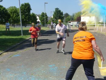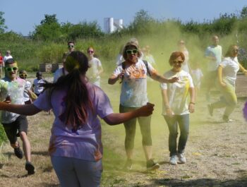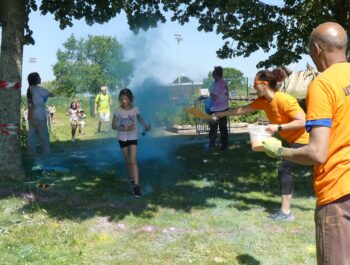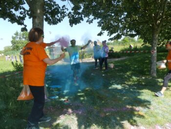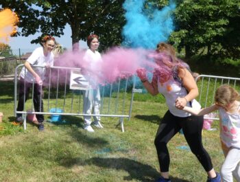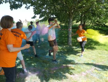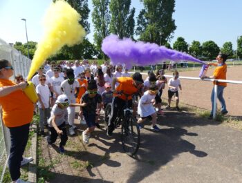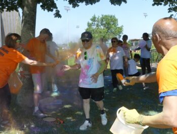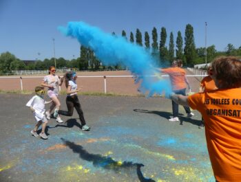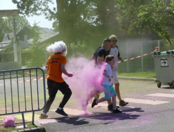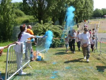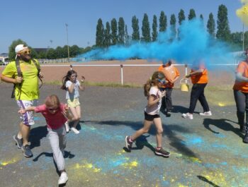 Un temps ensoleillé, une préparation minutieuse, une forte mobilisation : toutes les conditions étaient réunies pour vivre un moment inoubliable le samedi 3 juin 2023, à l’occasion des foulées couleurs. Cette année encore, cette manifestation sportive, familiale et conviviale a fédéré bon nombre de coureurs et de marcheurs particulièrement enthousiastes. Après un échauffement zumba rythmé et apprécié, les valeureux sportifs ont joyeusement suivi le parcours et ont tenté, sans réussite, d’échapper aux jets de poudres colorées. Organisé en présence de Monsieur le Maire et de plusieurs élus municipaux, cet événement a connu un franc succès, notamment grâce à l’implication du service des sports, des services techniques et des bénévoles, que nous pouvons remercier vivement.
