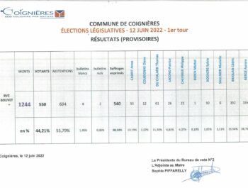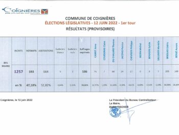Élections législatives, Participation citoyenne, Premier tour, Vote Premier tour des élections législatives 2022 Les Coigniériens ont participé au premier tour des élections législatives, le dimanche 12 juin 2022. Publié le 14 juin 2022 Précédent Retour à la liste Suivant