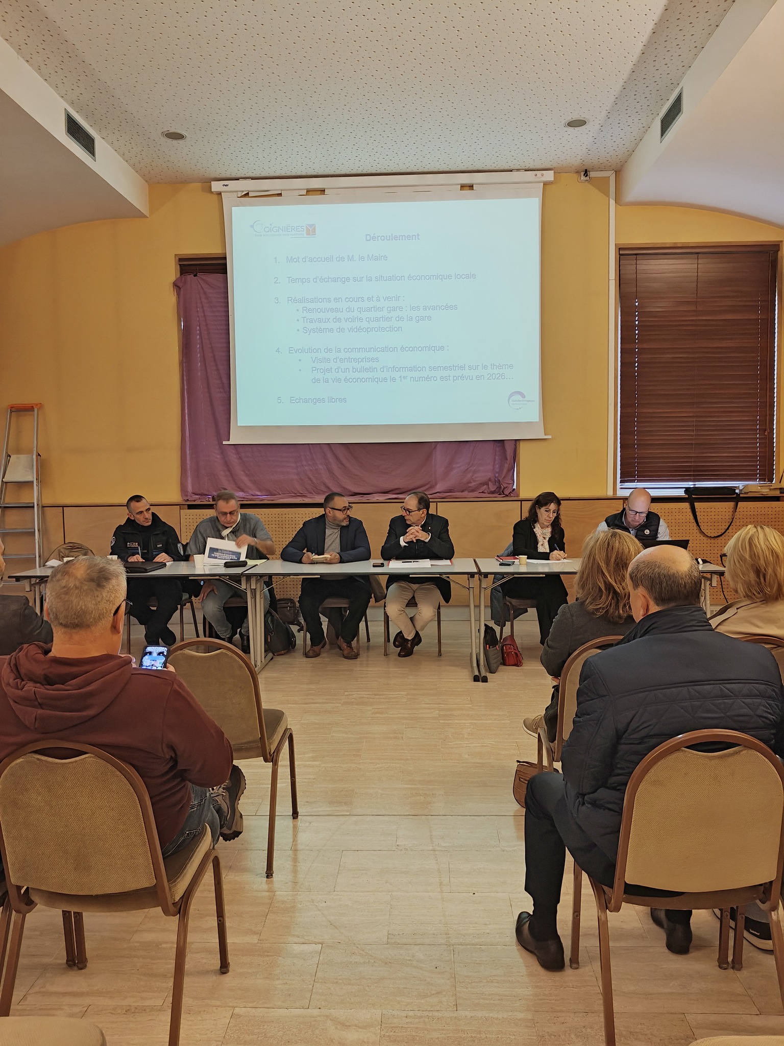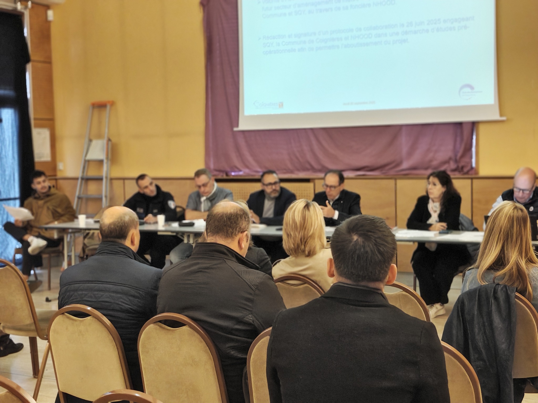 Un temps d’échange et de dialogue s’est tenu à la Maison de Voisinage avec les commerçants de Coignières. Présentation de l’avancée du projet quartier gare, point sur les travaux de voirie, sur l'extension de la vidéoprotection et divers échanges ont animé les discussions. Ces rendez-vous permettent à la commune de mieux comprendre les défis rencontrés par les entreprises, d’identifier des solutions et de partager sur les évolutions de la ville. La réunion s’est déroulée en présence des services municipaux, ainsi que de l’édile et de son adjointe en charge de l’économie et de l’emploi.