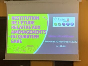 En présence de M. le Maire et de Cyril Longuépée, adjoint au Maire délégué à l'urbanisme, plus de 70 Coigniériens ont participé activement à la restitution de l'étude relative aux aménagements du quartier Gare le mercredi 30 novembre 2022. Un quartier dont la mutation est très attendue par les habitants.