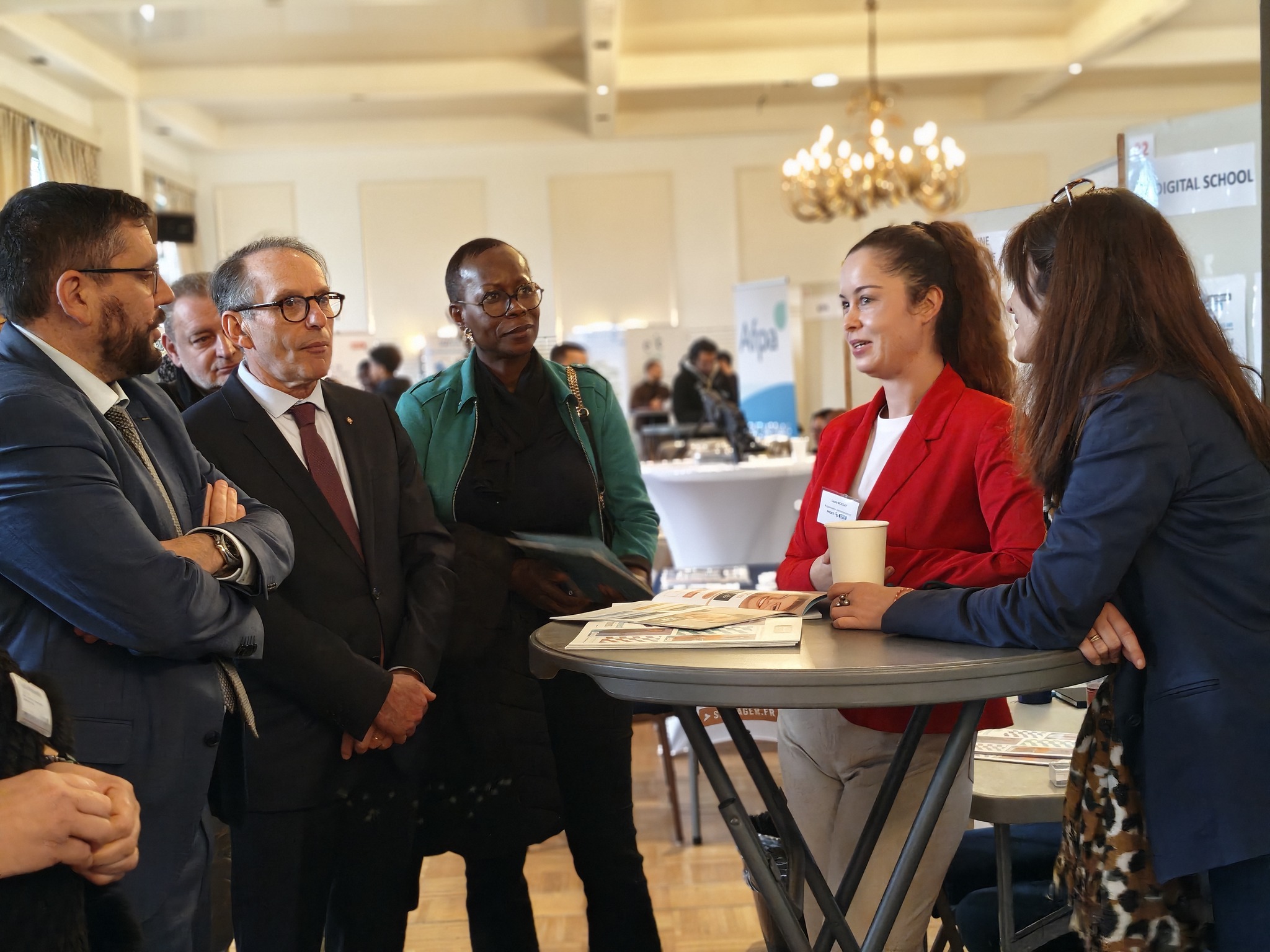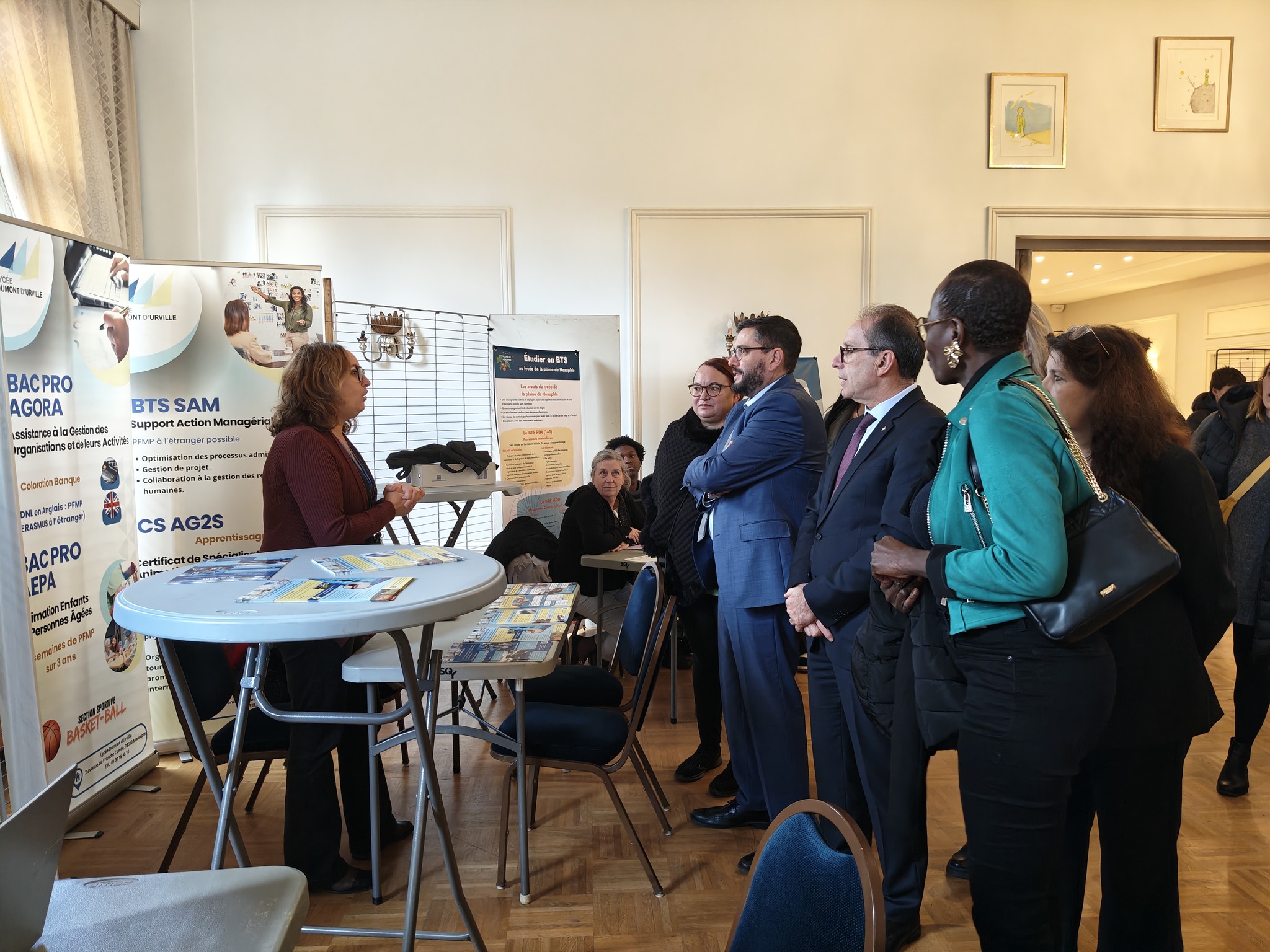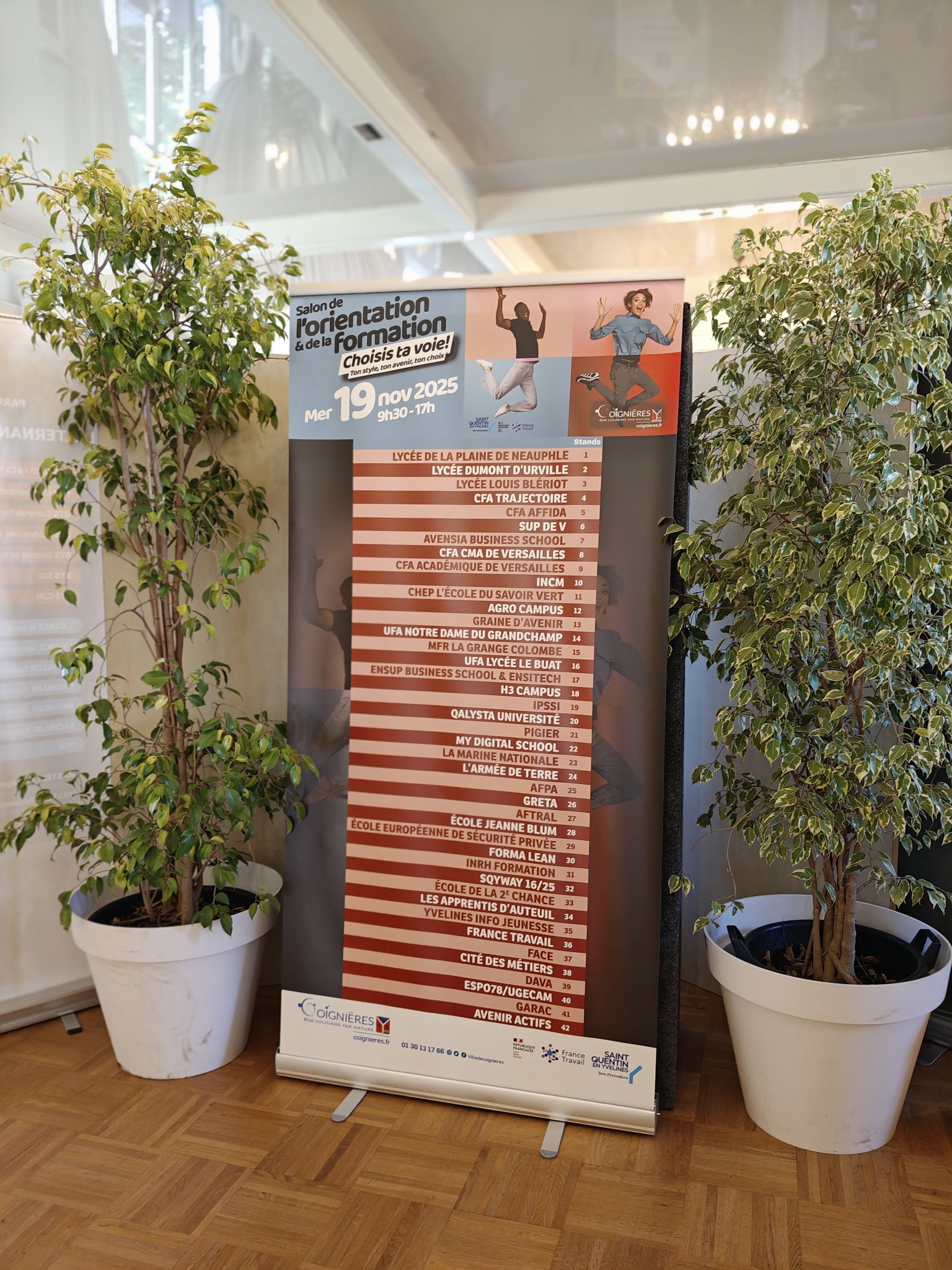 Le 19 novembre 2025, plus de 300 visiteurs ont franchi les portes des Salons Antoine de Saint-Exupéry à l’occasion de la 5ᵉ édition du Salon de l’Orientation et de la Formation. Adultes, étudiants, lycéens et collégiens ont pu échanger avec les 42 exposants présents pour les aider à choisir leur voie et répondre à toutes leurs questions. M. le Sous-Préfet de Rambouillet et M. le Maire, accompagnés d’élus de la commune dont son adjointe en charge de l’économie et de l’emploi, ainsi que d’élus de La Verrière, sont allés à la rencontre des différentes structures présentes afin de les saluer.