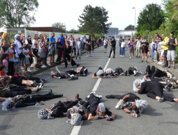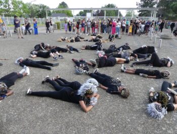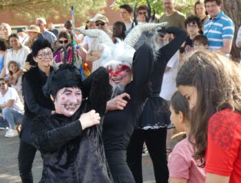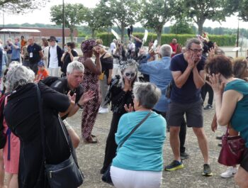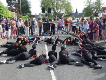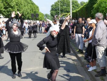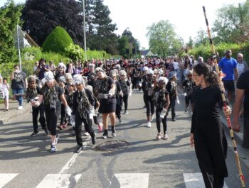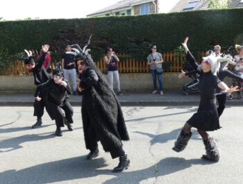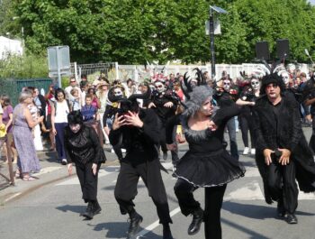L’heure était à la danse, à la décompression, à l’effroi et à la surprise en ce dimanche 11 juin 2023 ensoleillé. Désireuses d’assister à « Heyoka », spectacle carnavalesque dansé, plusieurs centaines de personnes, parmi lesquelles le Maire Didier Fischer et les élus locaux, ont investi la rue du Moulin à Vent en fin d’après-midi. Massés des deux côtés de la rue et sur le parvis de l’Espace A.Daudet, les nombreux spectateurs ont été subjugués par cette représentation de haut vol, construite par la Compagnie Pernette, par deux classes de l’école élémentaire Gabriel Bouvet, par un groupe d’habitants et par un groupe extra-scolaire. Fruit d’un travail de plusieurs mois et de l’implication exemplaire de l’ensemble des participants, cette prestation dominicale a émerveillé le public, surpris par les cris perçants, les propos farfelus, les gestes désarticulés et l’audace démesurée des protagonistes. Cette performance mémorable s’est achevée sur une participation massive et inattendue des spectateurs, invités à se mouvoir et à grimacer avec les acteurs principaux. Résultat : une euphorie collective inoubliable ! Remercions chaleureusement les membres de la Compagnie Pernette, les différents groupes ayant conçu ce spectacle, l’équipe de l’Espace A.Daudet et les agents municipaux, indispensables au bon déroulement de cette manifestation rendue possible par la Ville de Coignières et par SQY.