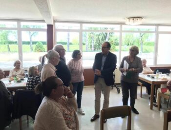 Les convives étaient nombreux le mardi 16 mai 2023, à l’occasion de la table d’hôtes de la Résidence-autonomie "Les Moissonneurs". M. Le Maire et Sophie Piffarelly, adjointe au Maire, ont participé activement à ce moment convivial et sympathique organisé par les agents du CCAS et de la R-A.