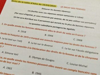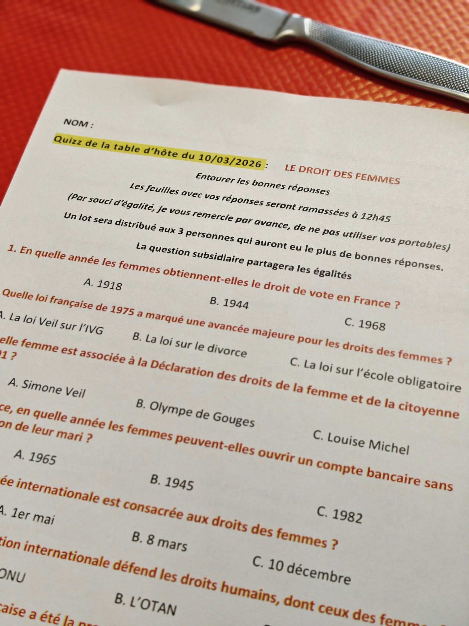 Les seniors se sont retrouvés à la résidence autonomie « Les Moissonneurs » pour la traditionnelle table d’hôtes. Un moment chaleureux placé sous le signe des échanges, du partage et de la convivialité. À l’occasion de cette rencontre, les convives ont pu tester leurs connaissances en participant à un quiz sur le thème du droit des femmes. Les trois participants ayant obtenu le plus de points ont eu le plaisir de repartir avec un petit présent.