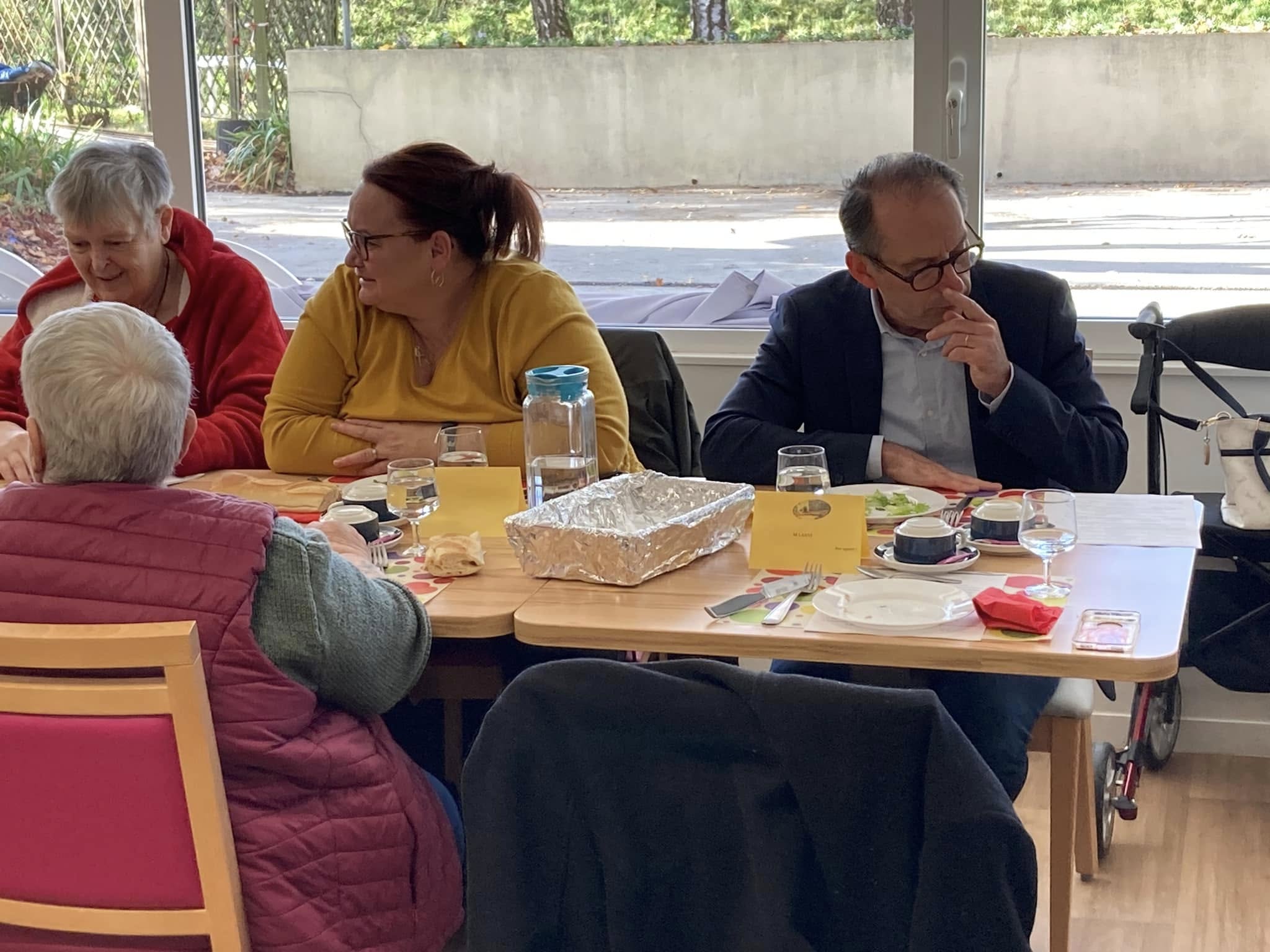 Less convives étaient nombreux à la table d’hôtes de la Résidence-autonomie " Les Moissonneurs". En présence de M. le Maire, Président du CCAS, de l’adjoint au maire en charge de l’action sociale, vice-président du CCAS et de l’adjointe au maire en charge de la communication, les participants ont pu profiter des animations proposées. Merci aux équipes du CCAS et de la RA pour l’organisation de ce moment convivial, toujours très apprécié.