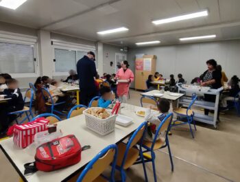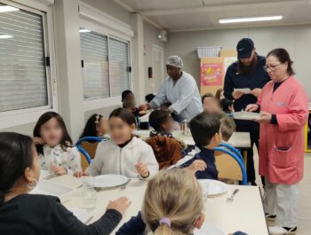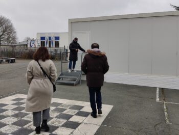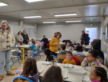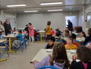Travaux du groupe scolaire G.Bouvet : quand les enfants découvrent leur réfectoire provisoire