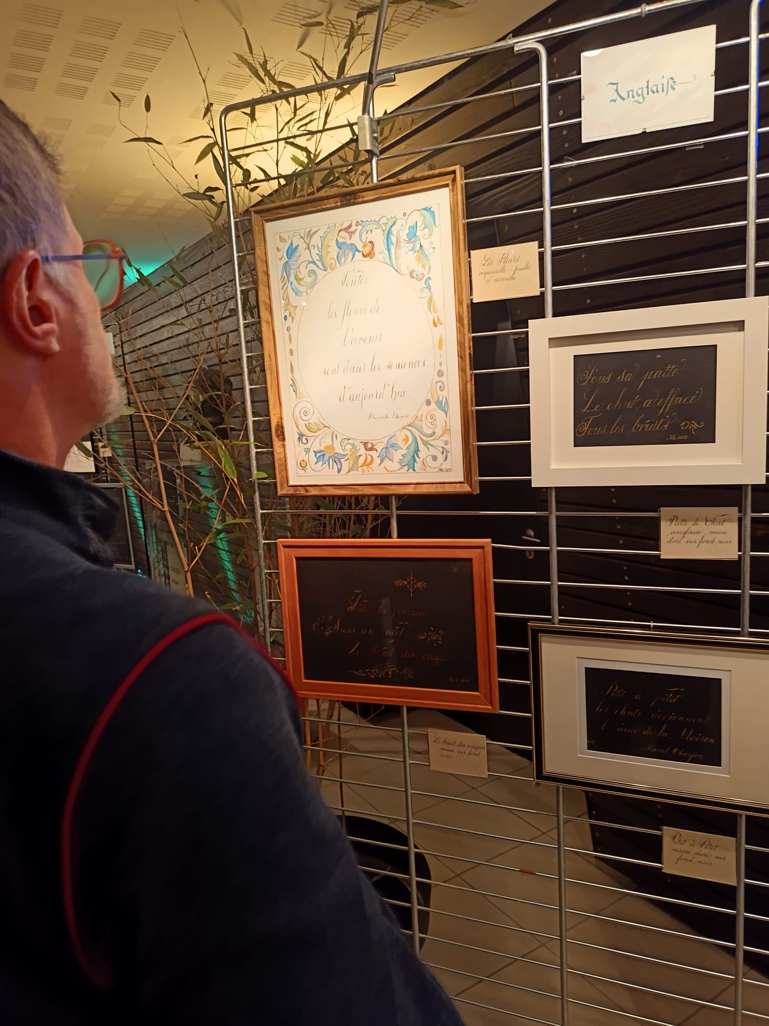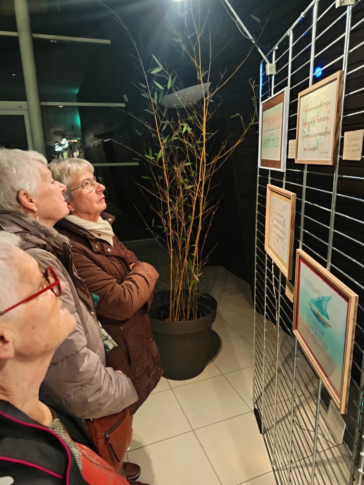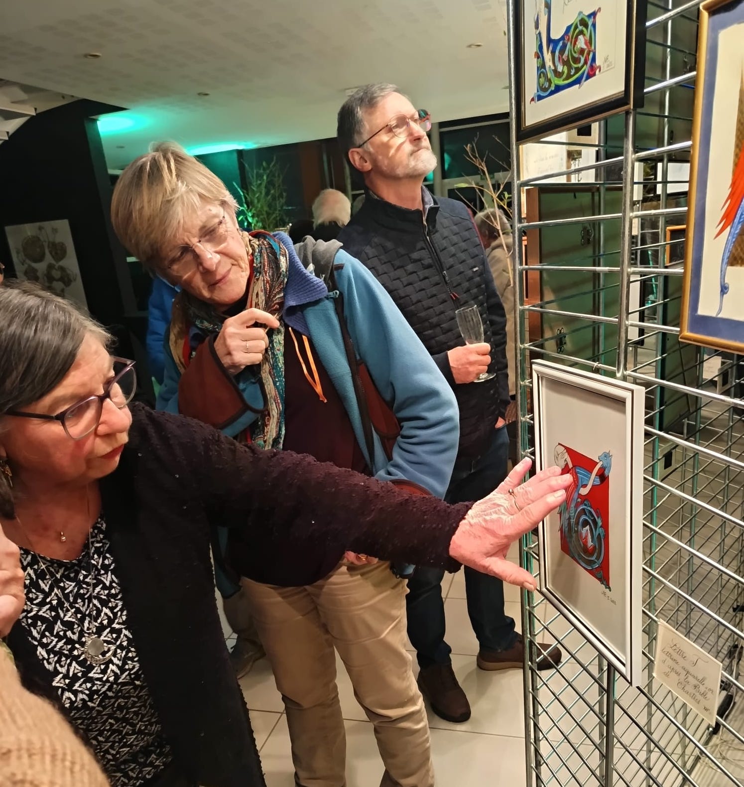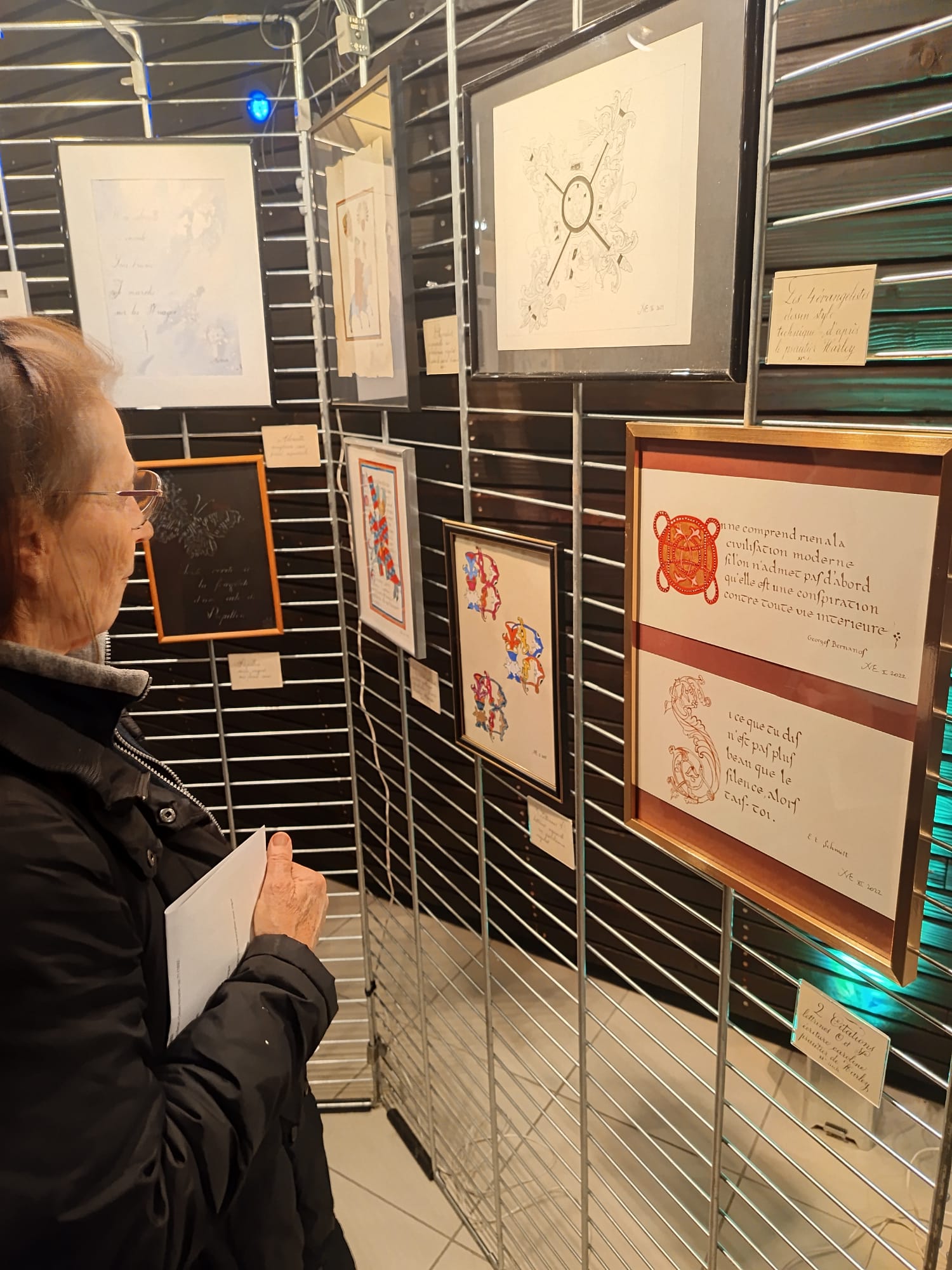 Quelle minutie de la part de Marion Evrard ! Sa pratique de la calligraphie (l'art de former élégamment les caractères de l'écriture) et de l'enluminure (illustration exécutée à la main qui orne un texte manuscrit), sur des supports variés, a enchanté les visiteurs, parmi lesquels le Maire et son adjoint délégué à la culture, le 10 novembre 2025.