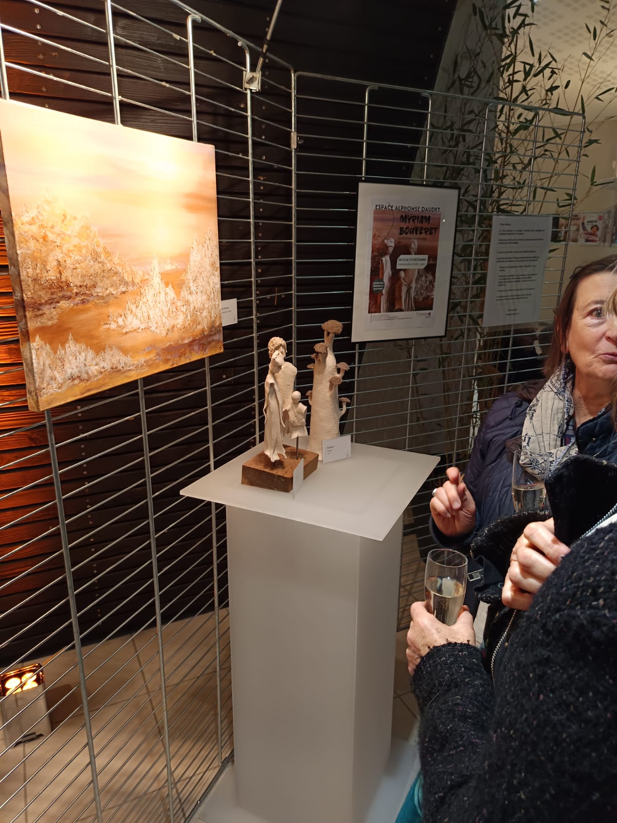 Lors de ses innombrables voyages (Pérou, Italie, Cuba, Norvège, La Réunion, États-Unis, Portugal...), Myriam Bouveret a pris l'habitude de photographier les beaux paysages. Lesquels sont devenus une source d'inspiration (fidèle ou imaginaire) pour ses peintures depuis 2014. Figure emblématique de notre commune, la présidente du Coignières Foyer Club s'adonne également à la sculpture depuis 2018. Ses créations, imaginées ou créées à partir de photos, prennent la forme de figurines en terre. Le 9 décembre 2025, à l'Espace A.Daudet, de nombreux visiteurs, notamment M. le maire et son adjointe déléguée aux cérémonies et aux fêtes, sont venus contempler les diverses oeuvres de la passionnée d'art. Vous aussi, venez admirer cette exposition ouverte à tous jusqu'au vendredi 19 décembre, aux horaires d’ouverture du théâtre.